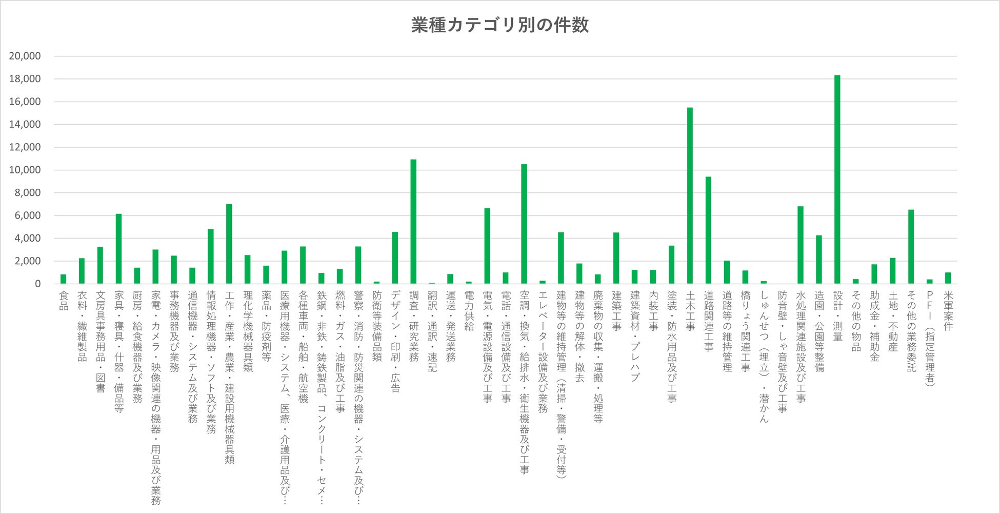 3. 業種カテゴリ「設計・測量」が18,000件以上。案件全体の10%ほどを占める
