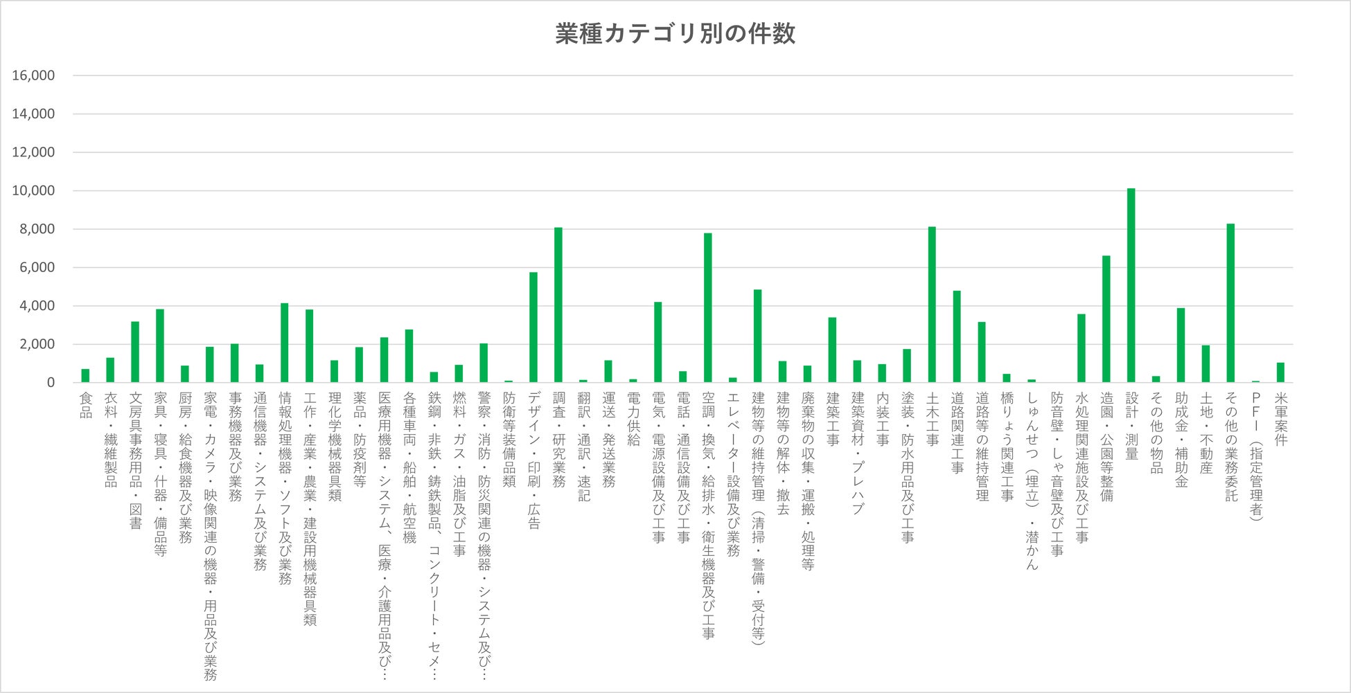 複数の業種カテゴリが1案件に付与されることがあるため、業種カテゴリの合計件数が月別の入札・公募件数にはなりません。