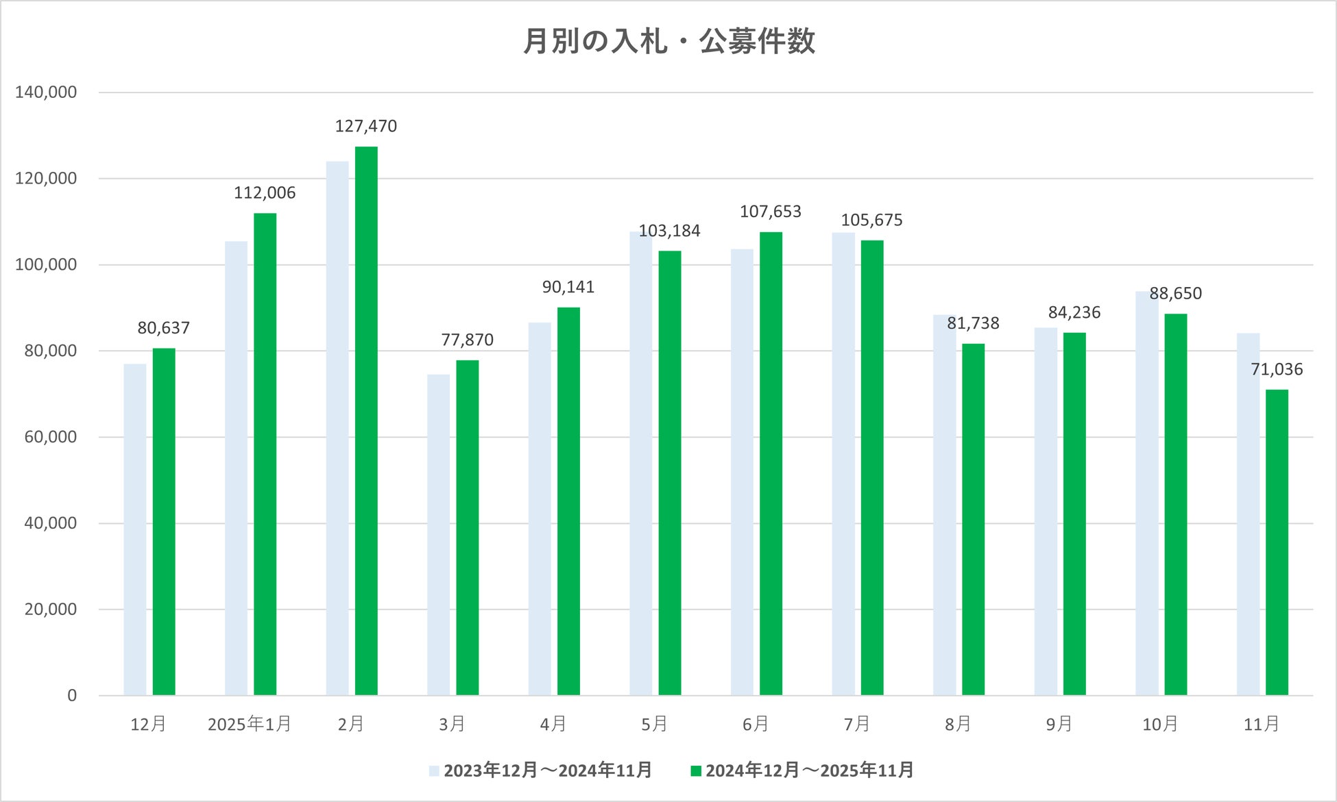 2025年11月度 入札・公募件数は7.1万件 全国の動向を集計【入札王】